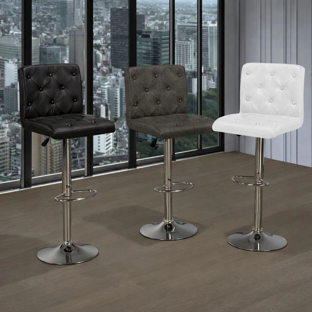 We understand that personal style varies, which is why we offer these bar stools in a choice of three elegant finishes: Black Leatherette, White Leatherette, or Grey Linen fabric. Choose the color that matches your decor and adds a touch of sophistication to your home.