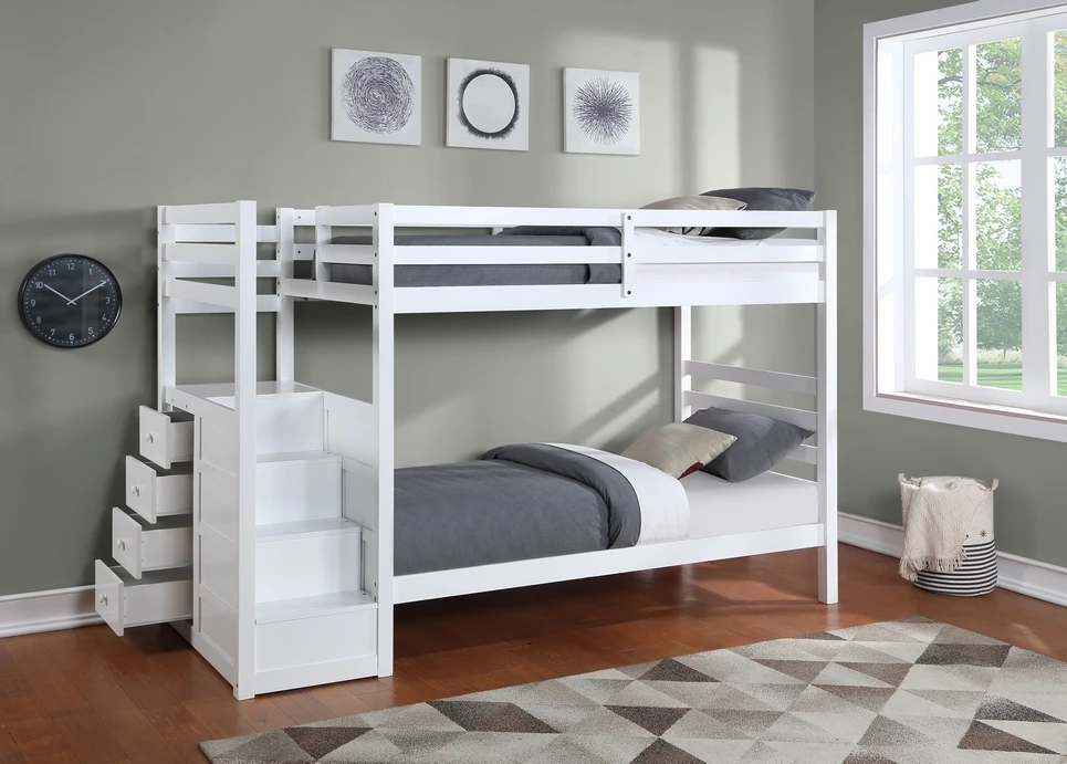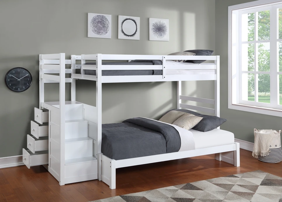 B-1892 Single/Single Staircase Bunk Bed – White Finish