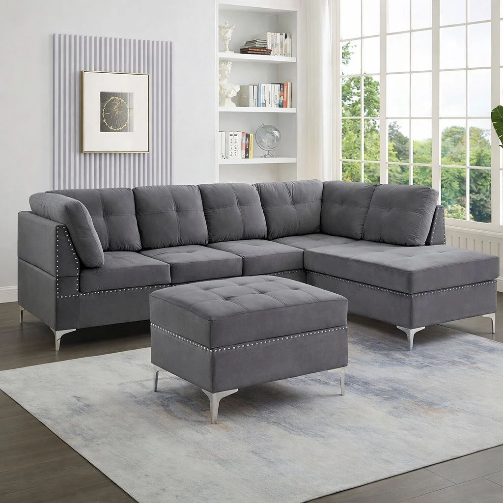 | T1233G -S |  Sofa Sectional | 110″W 81″D 36″H | Velvet | Grey |