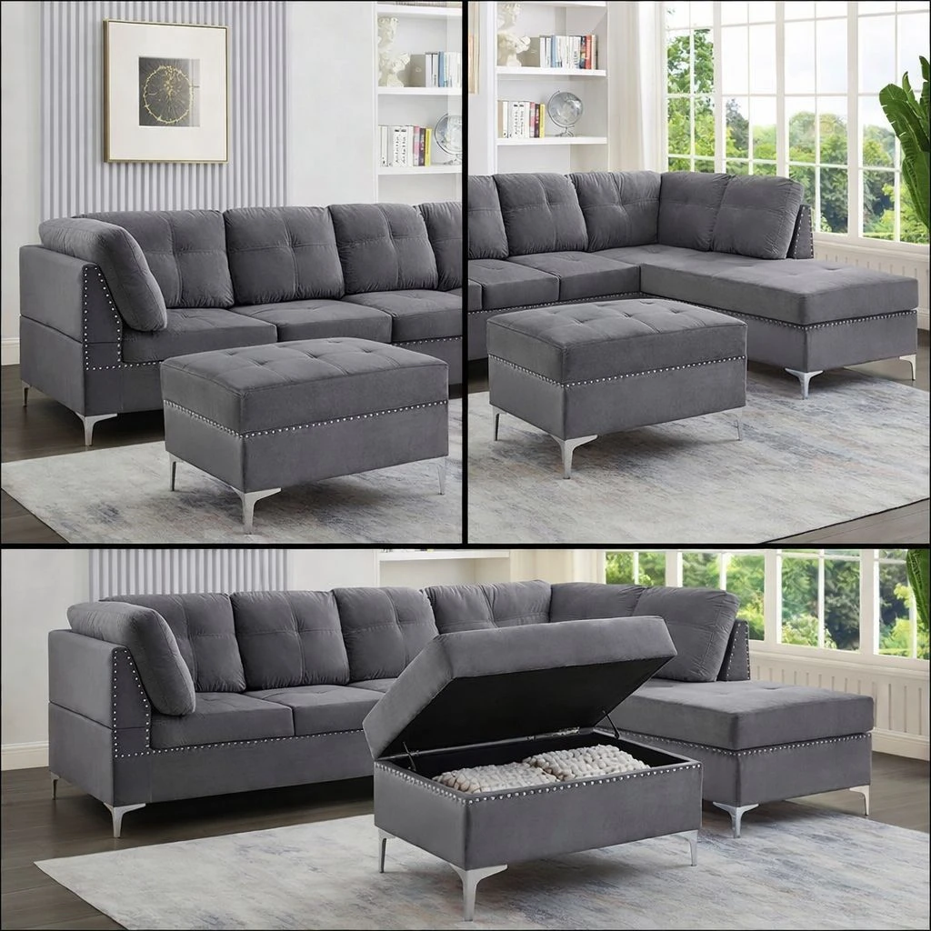 Transform your home with our stunning sofa sectional and storage ottoman, designed to bring style, comfort, and functionality to your living space. Here’s why this exquisite furniture set is the perfect addition to your home: