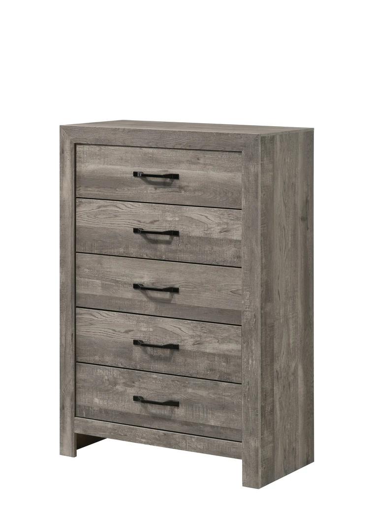 This set features a beautiful driftwood gray finish, shiplap-style design, and working touch dimmable lights on the headboard with a convenient wall plug. USB charging ports on the headboard make this bedroom set practical and unique for everyday living.