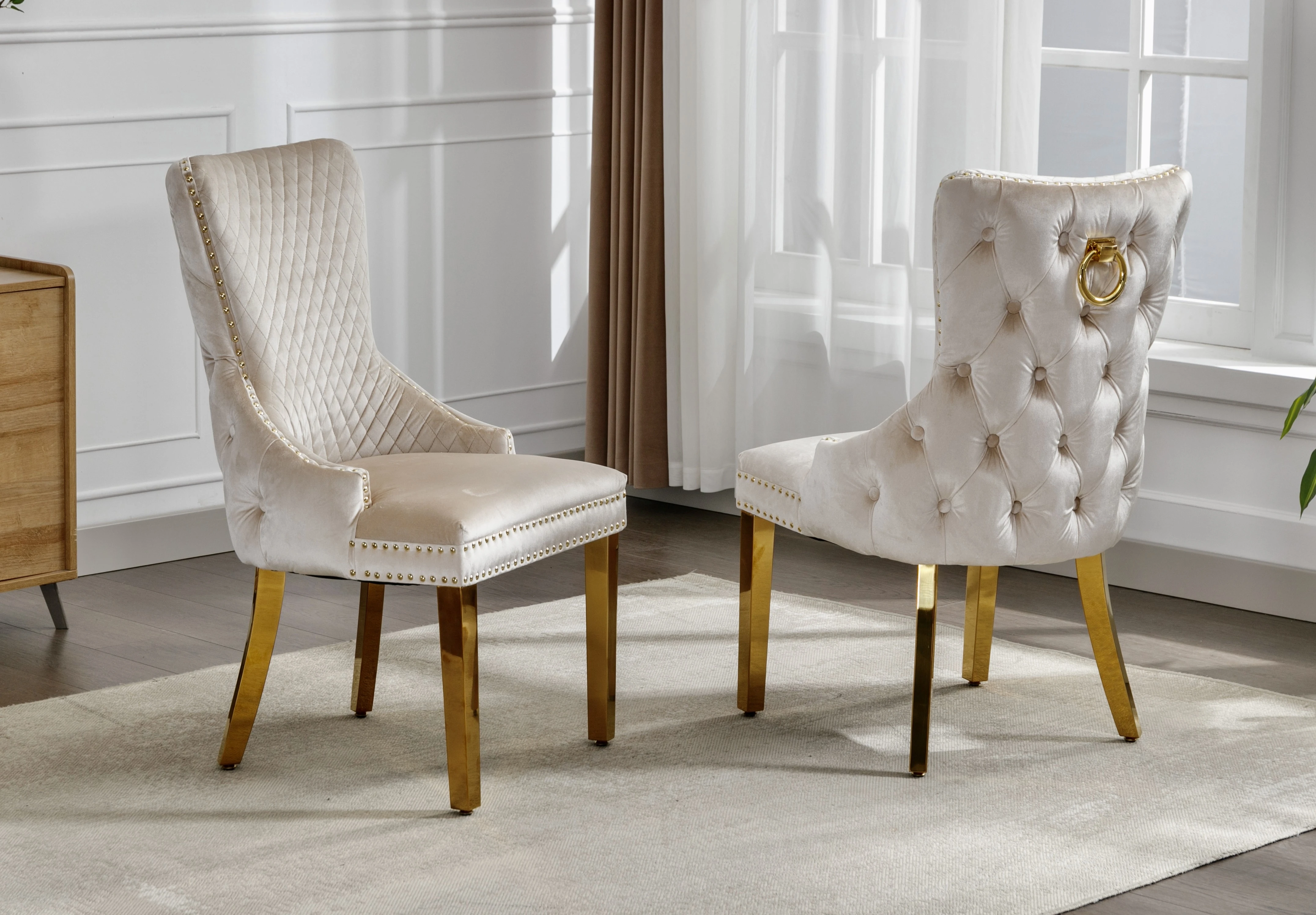 • Crème velvet dining chairs