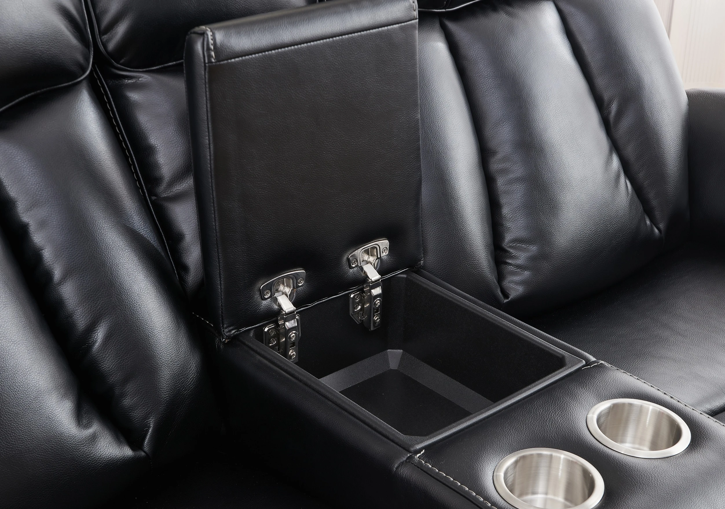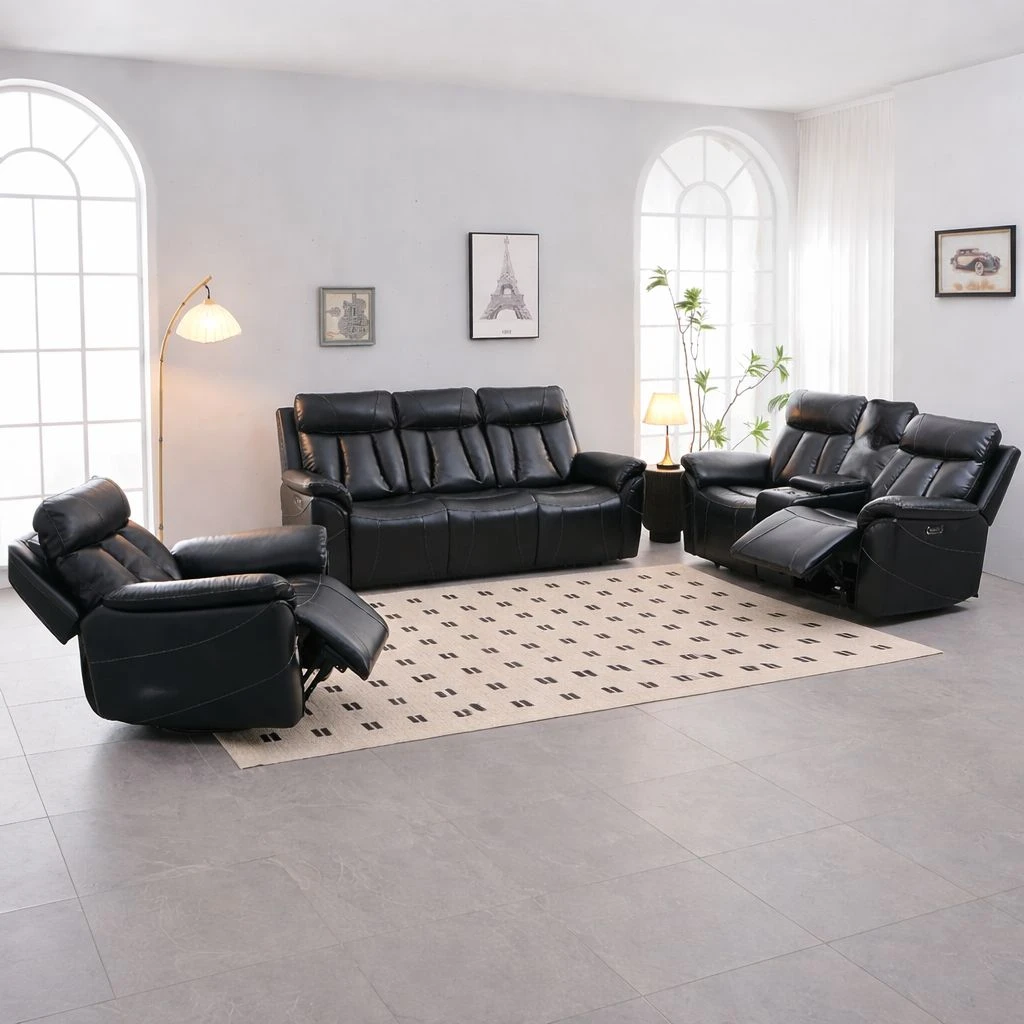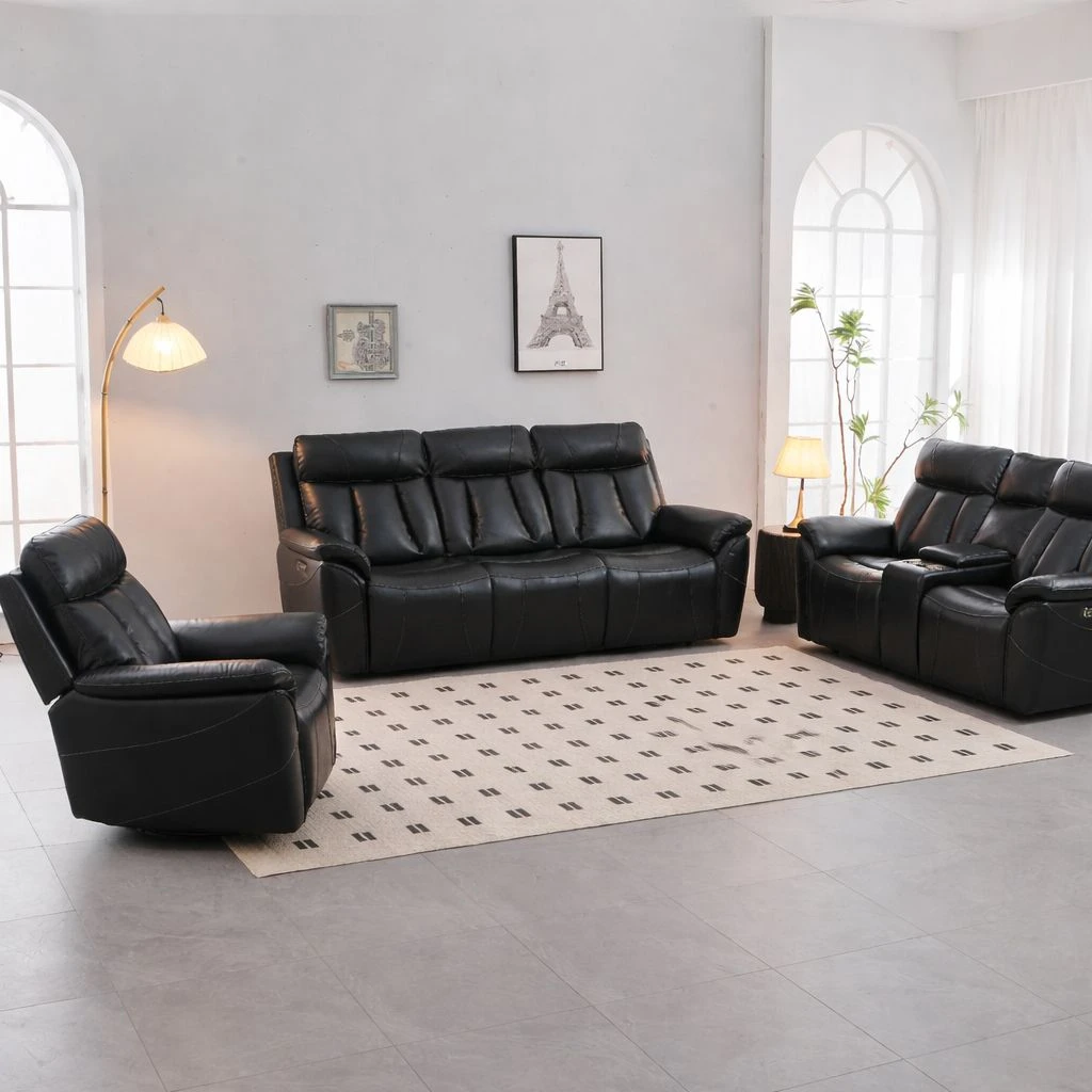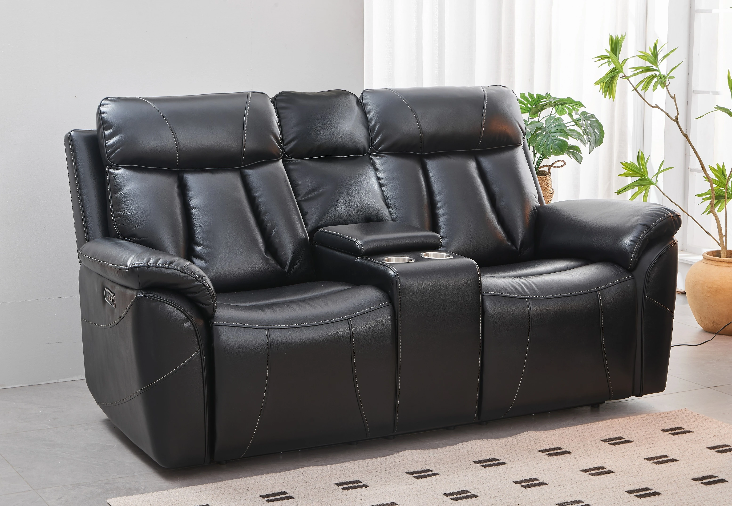 Each seat features independent power reclining and adjustable headrests, allowing you to customize your seating position effortlessly. The built-in center console provides convenient storage and includes two cup holders, while integrated USB charging ports keep your devices powered within reach.