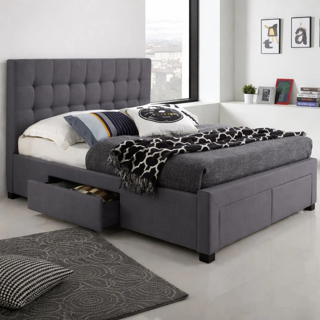 | T2152G-D  |  54″ Platform Bed with Storage | 57″W 78″D 44″H | Linen | Charcoal Grey |