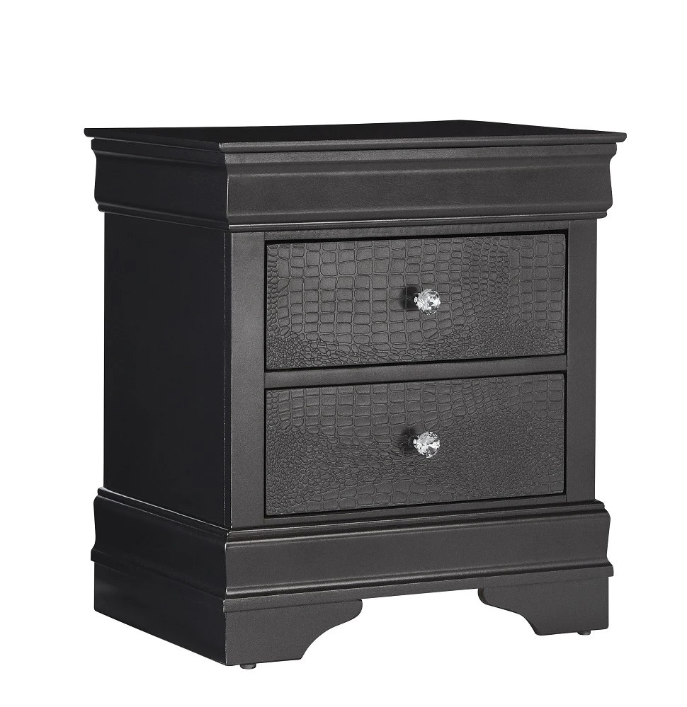 The Pompei (Grey) Bedroom Set delivers a rich, modern-classic style wrapped in a deep metallic grey finish. Crafted from durable tropical wood, this elegant collection features an upholstered crocodile-pattern PU headboard accented with sparkling crystals and soft LED touch lighting—creating a stunning focal point for your bedroom.