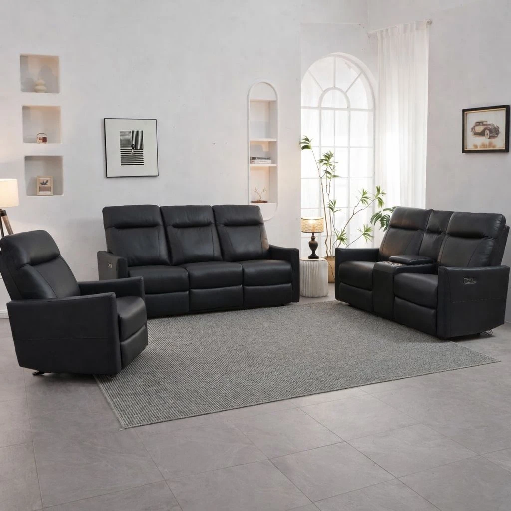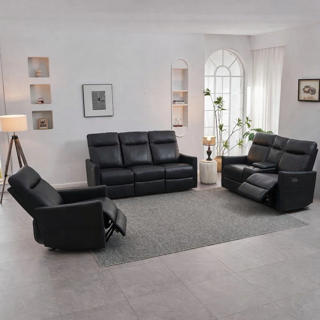 • Dual power recliners on sofa, loveseat, and chair