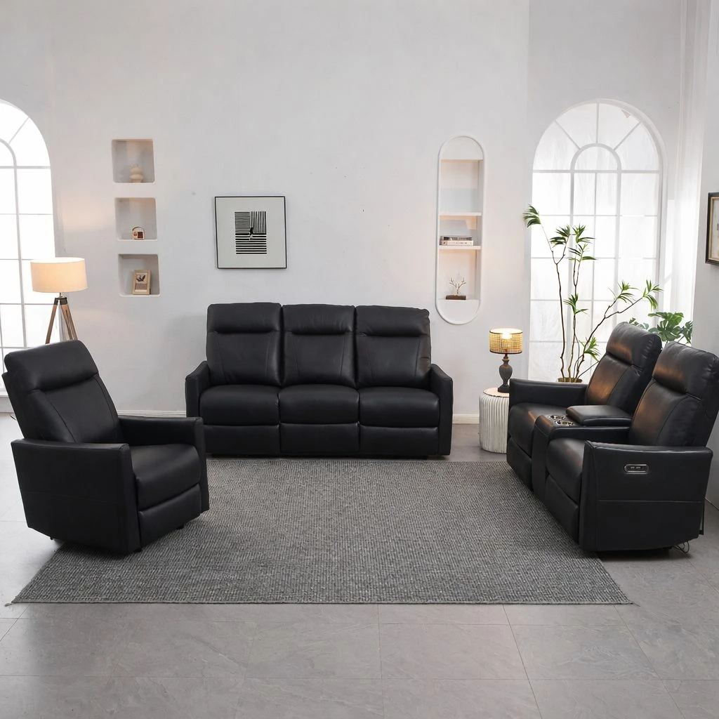 Experience ultimate comfort and modern convenience with the IF-8005 Dual Power Recliner Set. Upholstered in soft black leather match, this collection is designed for relaxation, durability, and contemporary style—perfect for living rooms, home theatres, or entertainment spaces.