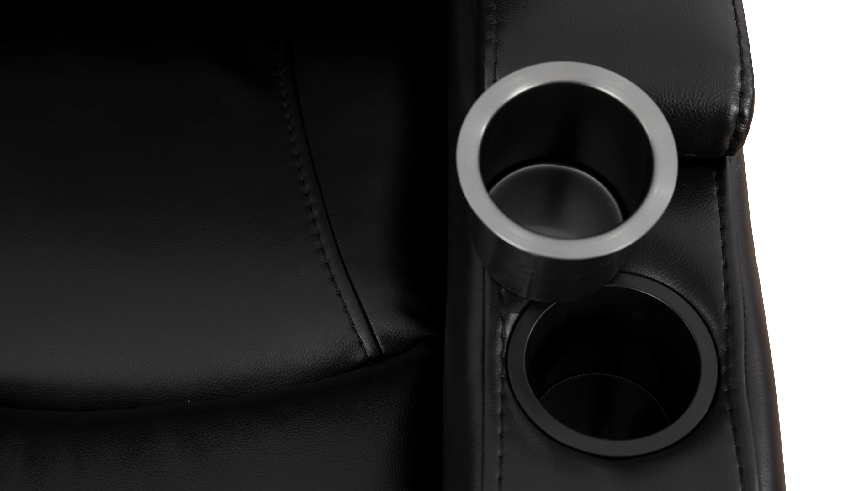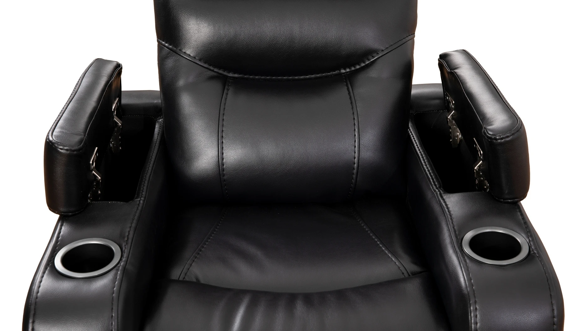 It features a smooth rocking and 360° swivel motion, an easy steel pull handle for reclining, and superior “Seat Zone” ergonomic support. For added practicality, it includes two cup holders and two lift-up storage compartments inside the arms, perfect for remotes, snacks, or accessories.