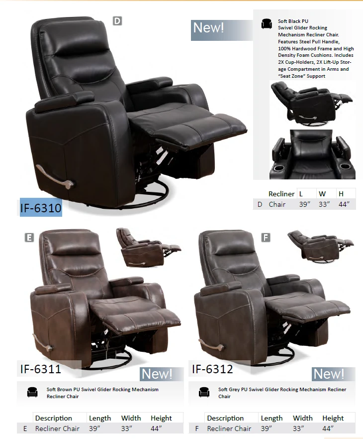 IF-6310 – Swivel Glider Rocking Recliner Chair (PU Leather)