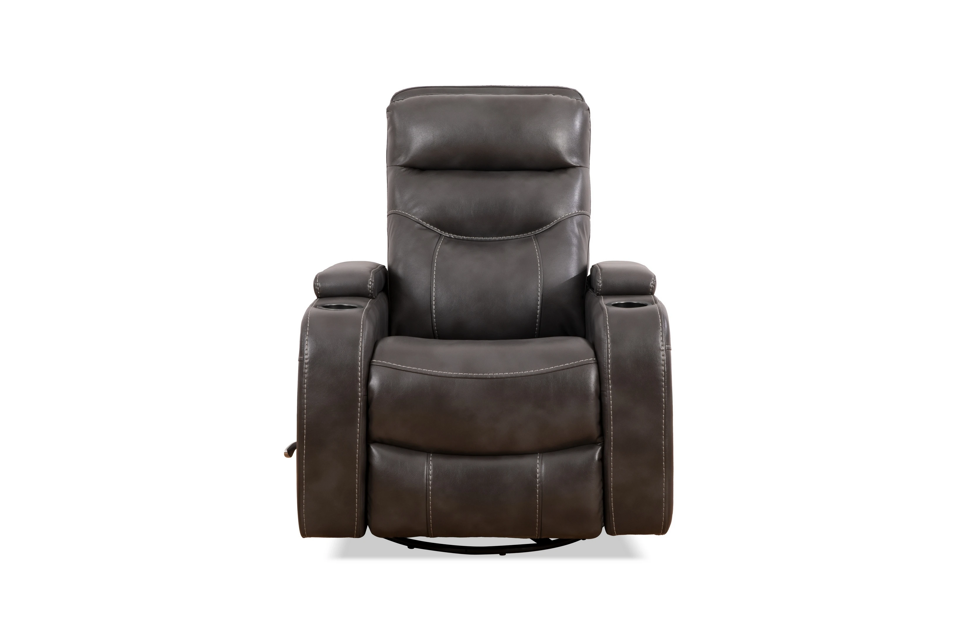 It features a smooth rocking and 360° swivel motion, an easy steel pull handle for reclining, and superior “Seat Zone” ergonomic support. For added practicality, it includes two cup holders and two lift-up storage compartments inside the arms, perfect for remotes, snacks, or accessories.