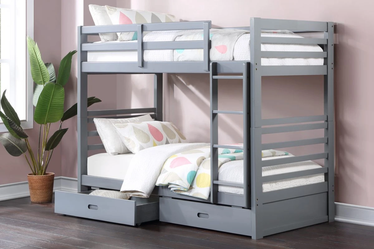 | T2710G | 39″/39″ Bunk Bed (Grey) | 43″W 79″D 65″H | Wood | Grey Finish |